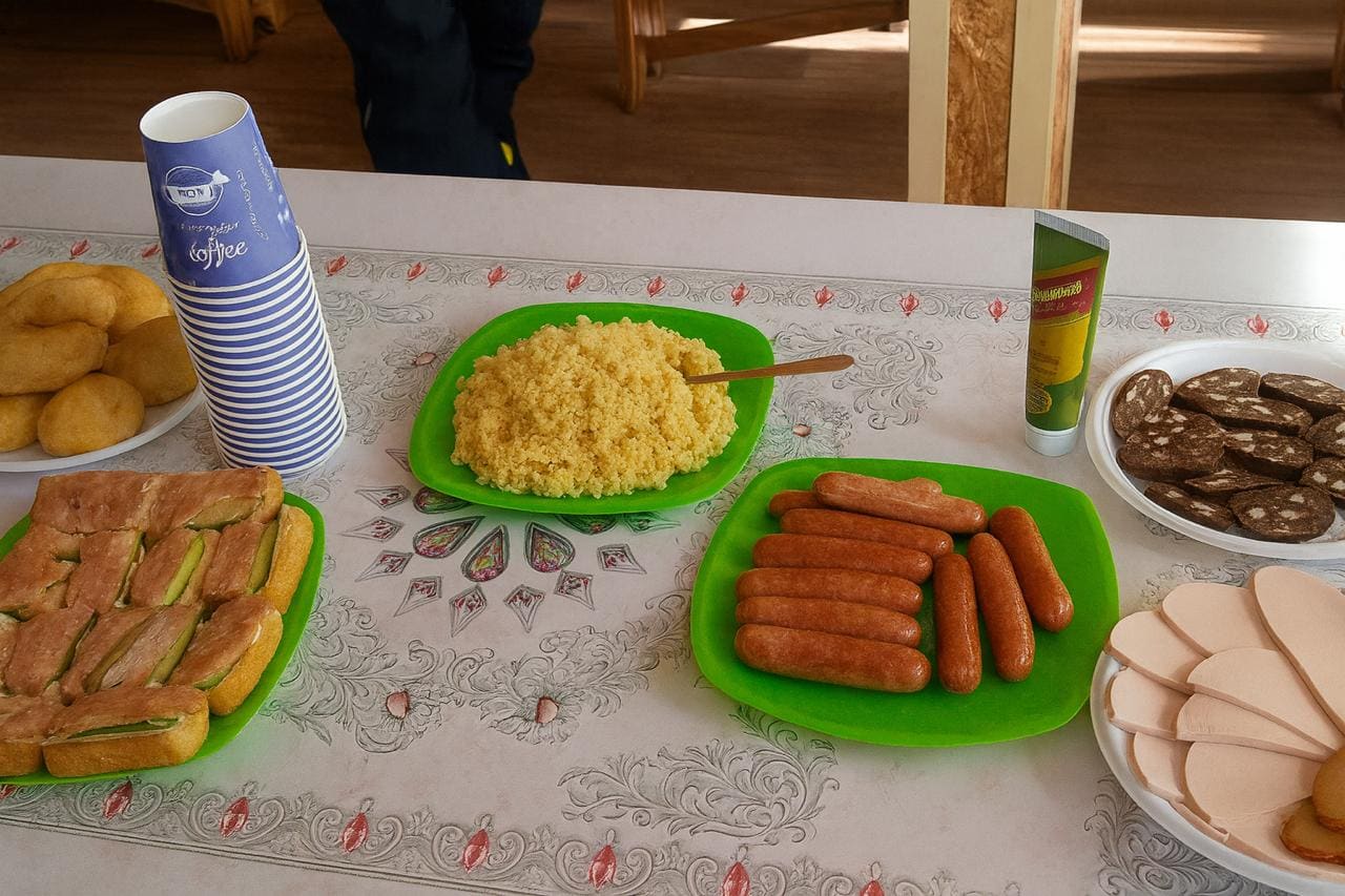 - Минусы: Повар не наш, питание по меню наравне со всеми посетителями кафе, 8 человек в номере (вместо 4), хотя есть парочка VIP-номеров на 2-4 человека.